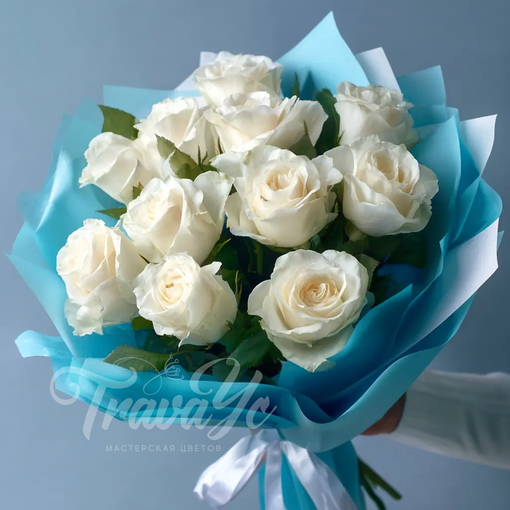 Уютный зимний мотив, в котором белые розы раскрываются особенно мягко. Этот букет символизирует спокойствие, искренность и надежду. Подойдёт для людей с утончённым вкусом.
