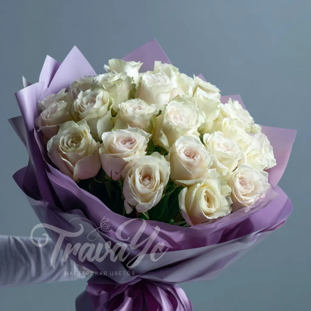 Мягкий и тёплый букет, навеянный атмосферой вечернего покоя. Белые розы создают уютное и гармоничное настроение. Идеален для романтического жеста или признательности.