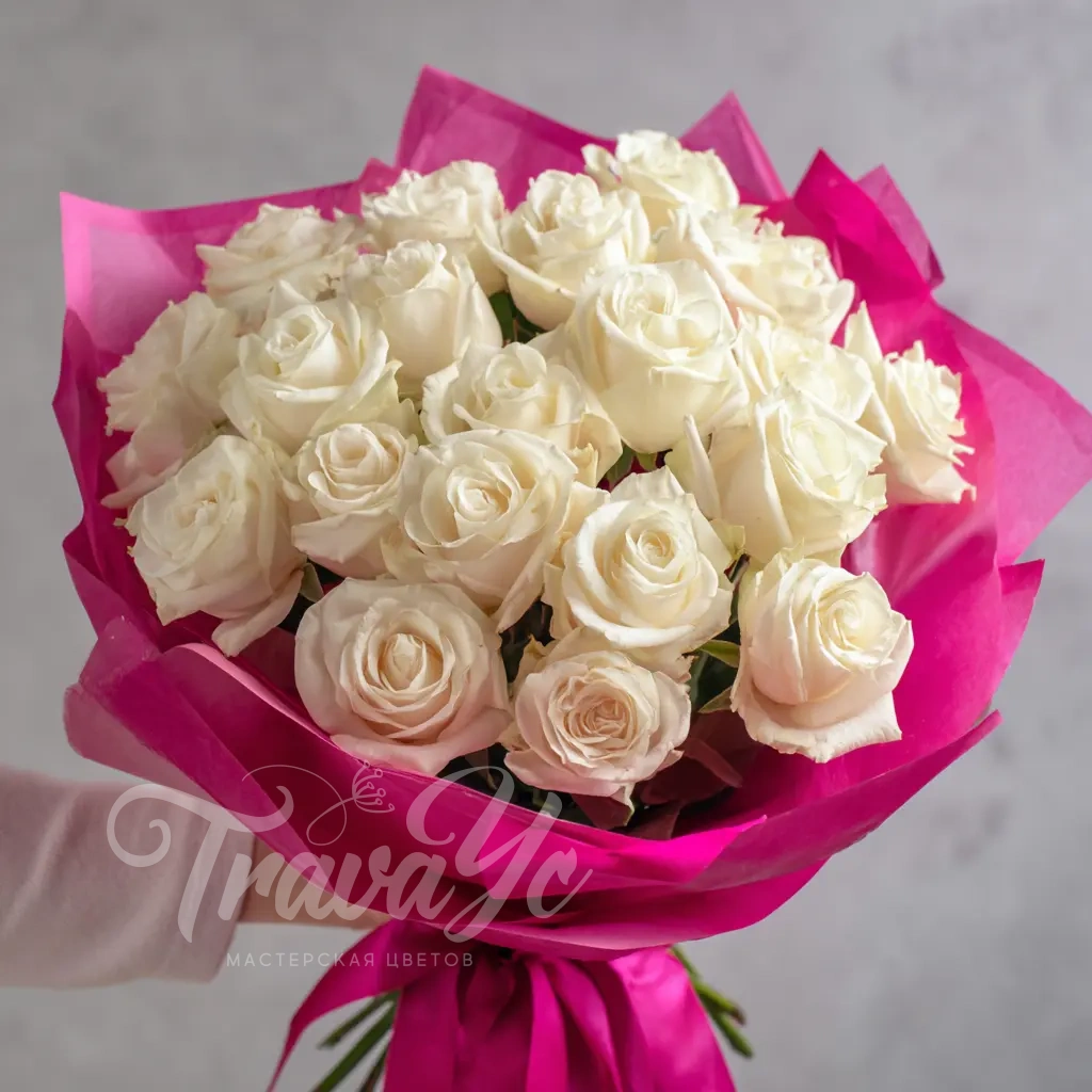 Композиция, отражающая искренность, нежность и заботу. Белые розы в этом букете говорят без слов — о чувствах, которые не нуждаются в объяснении. Универсальный выбор для самых разных поводов.