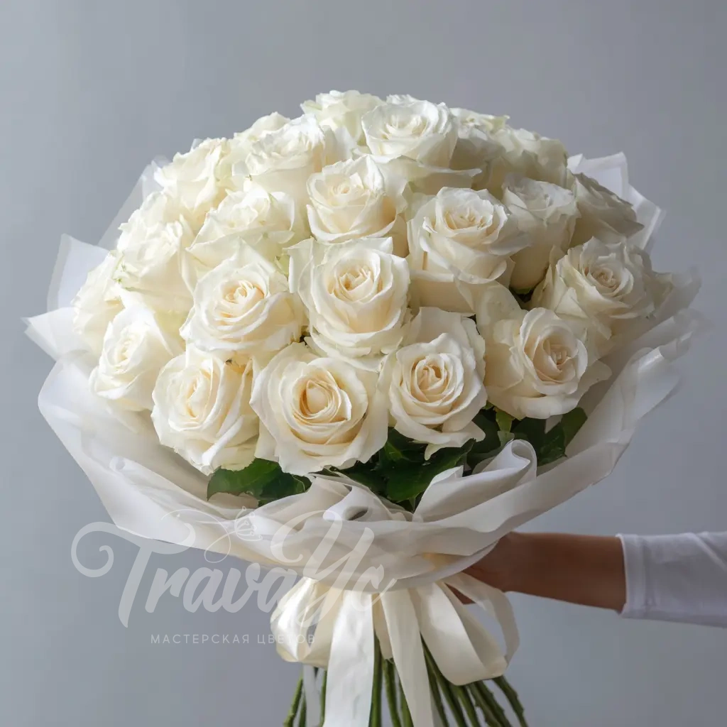 Белые розы «Снежная акварель»