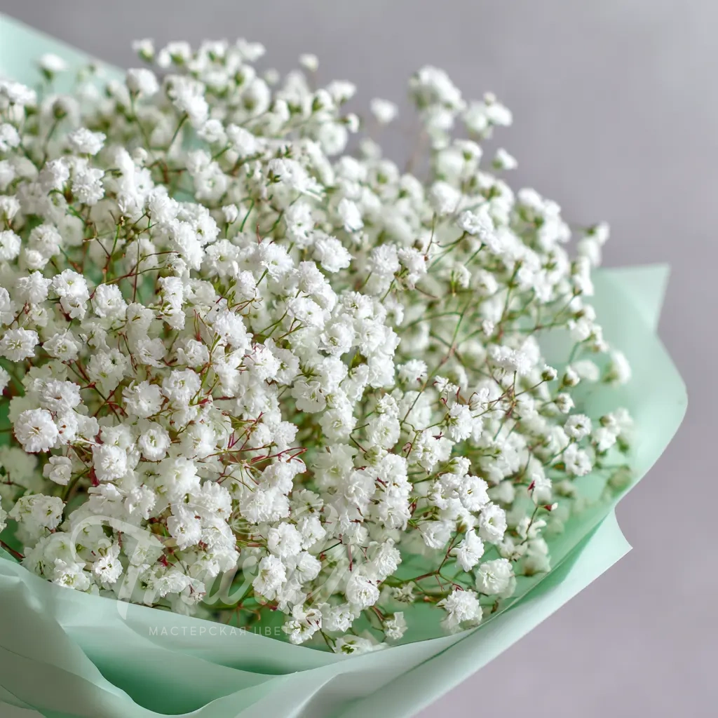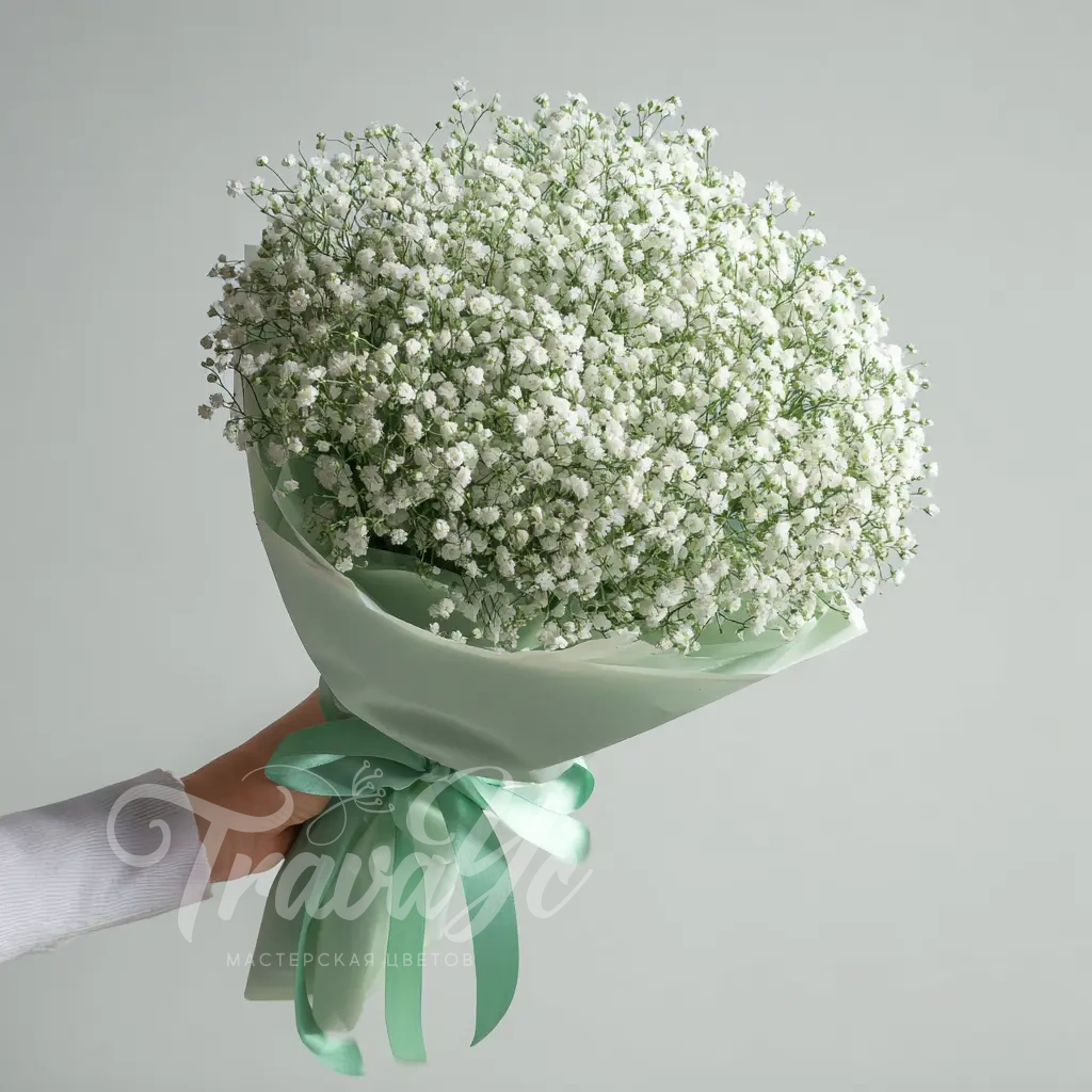 ГлавнаяКаталогБукетыМонобукет из гипсофилы «Молочная вуаль»
