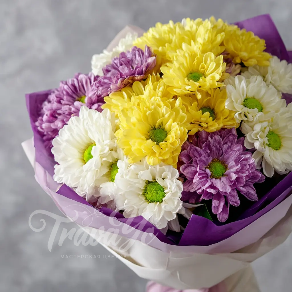 ГлавнаяКаталогБукетыМонобукет из хризантем «Сиреневый рассвет»