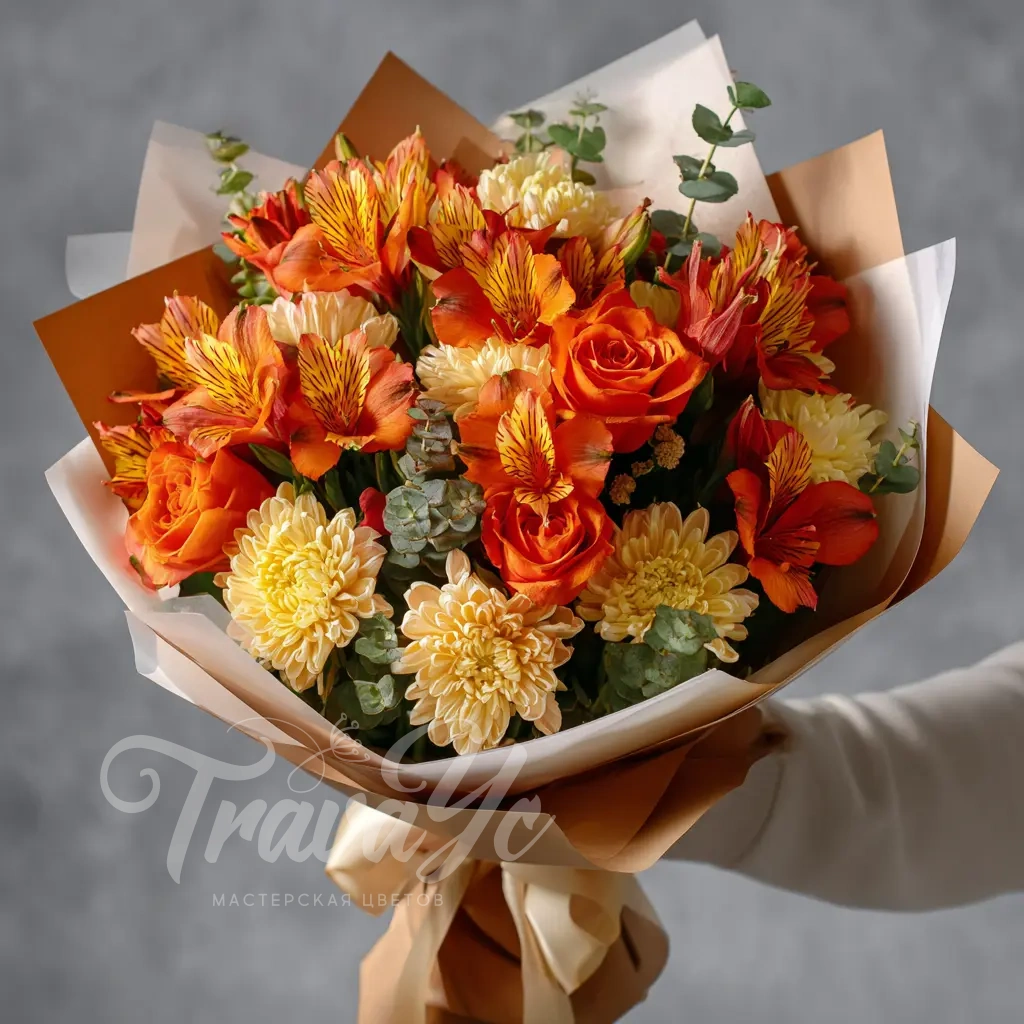 Яркие оттенки альстромерий в этом букете напоминают о жарких странах и насыщенной природе. Отличный вариант для летних праздников, отпускных встреч и эффектного комплимента.