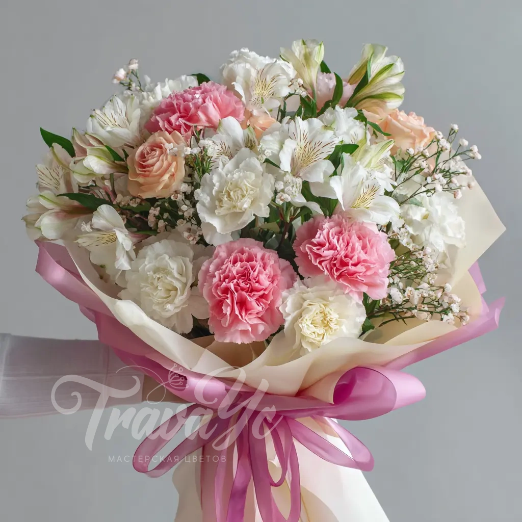 Непринуждённый и жизнерадостный букет для лёгкого комплимента. Альстромерии в игривых тонах отлично подойдут для молодёжной аудитории, подарков друзьям, коллегам и любимым.