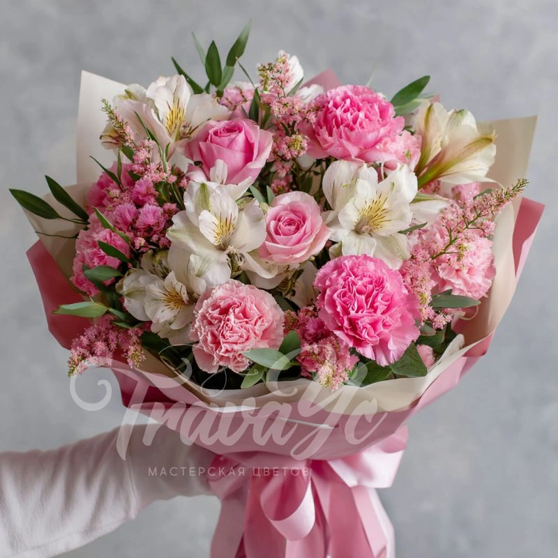 Букет с гвоздиками «Розовый каприз»