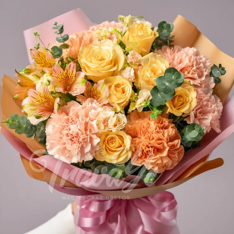 ГлавнаяКаталогБукетыБукет с гвоздиками «Солнечный закат»