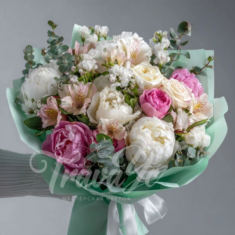 Букет с пионами «Облачное настроение»