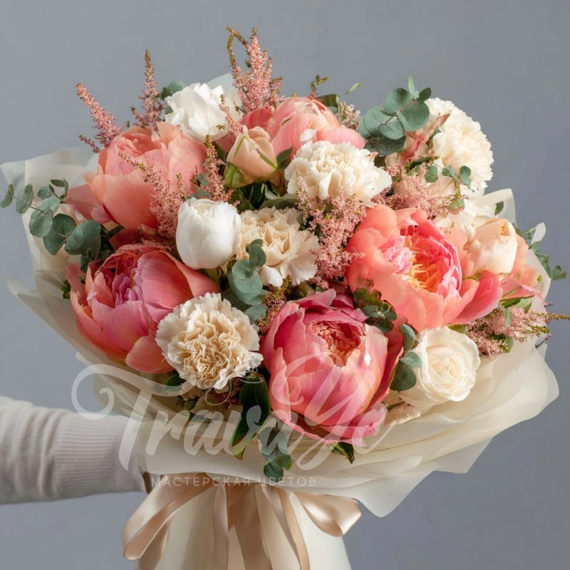 Букет с пионами «Дыхание облаков»