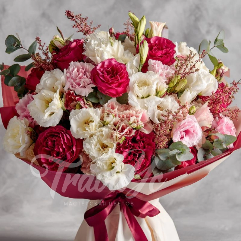 Нежный акцент из изящных бутонов эустомы — свежесть и аромат в каждой детали. Идеально подойдёт для поздравления коллеги, подруги или любимой женщины. Сдержанно, но выразительно.