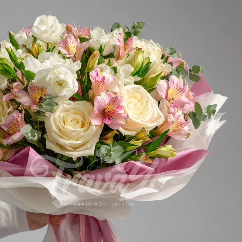 ГлавнаяКаталогБукетыБукет с эустомами «Пыльца нежности»