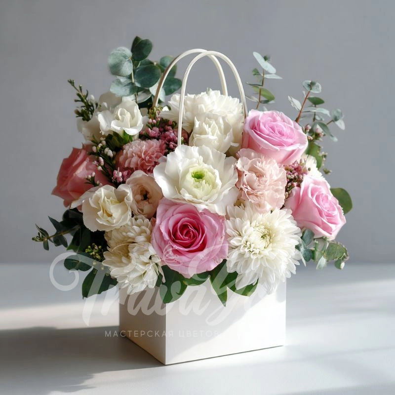 ГлавнаяКаталогКомпозицииКомпозиция в сумочке «Нежность с собой»