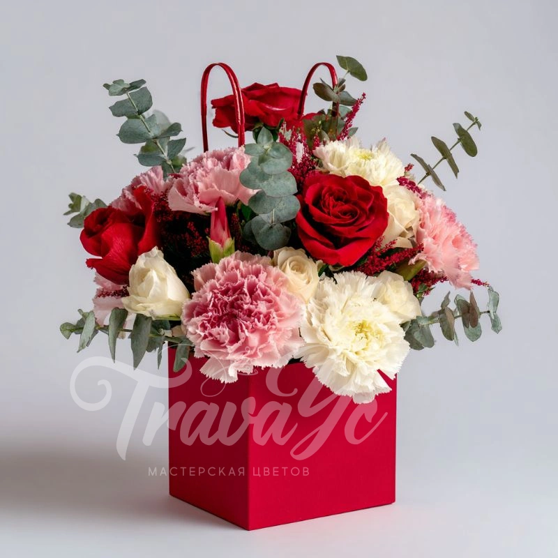 ГлавнаяКаталогКомпозицииКомпозиция в сумочке «Цветы в ритме города»