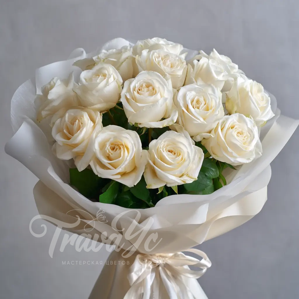 Стильный и торжественный букет из 15 белоснежных эквадорских роз высотой 50 см. Идеален для свадеб, юбилеев и других важных событий. Эквадорские розы — это крупные бутоны, насыщенный аромат и безупречная свежесть.