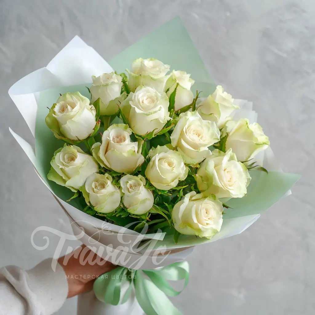 Сдержанный и лаконичный букет из 15 белых роз отечественного производства — выбор для тех, кто ценит натуральность и простоту. Подойдёт как для деловых случаев, так и для поздравлений близких.