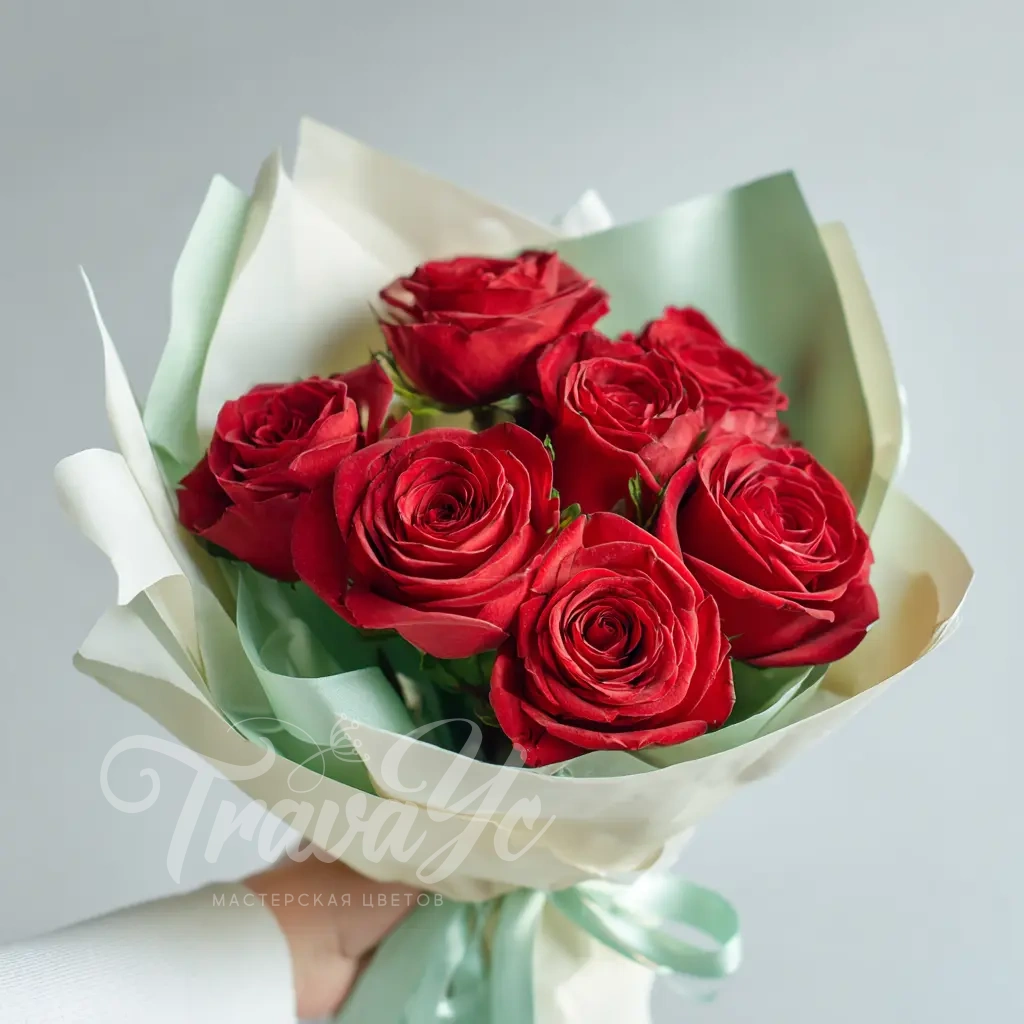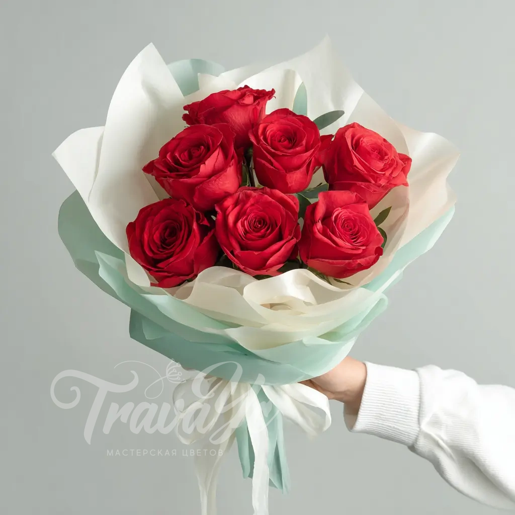 Букет с динамичным характером. Подходит для тех, кто любит впечатлять. Красные розы в воздушной упаковке — универсальное решение для праздника и признания.